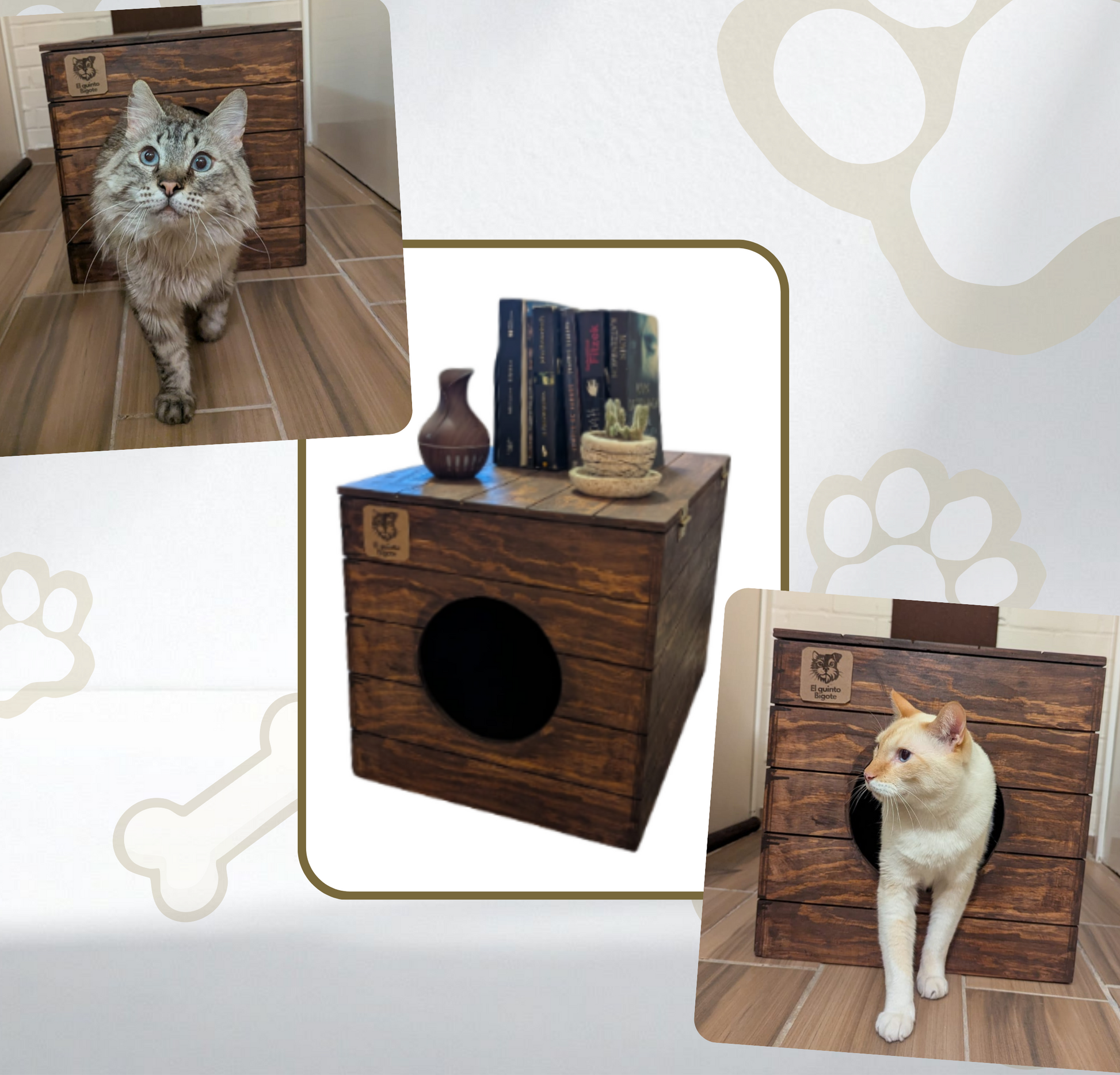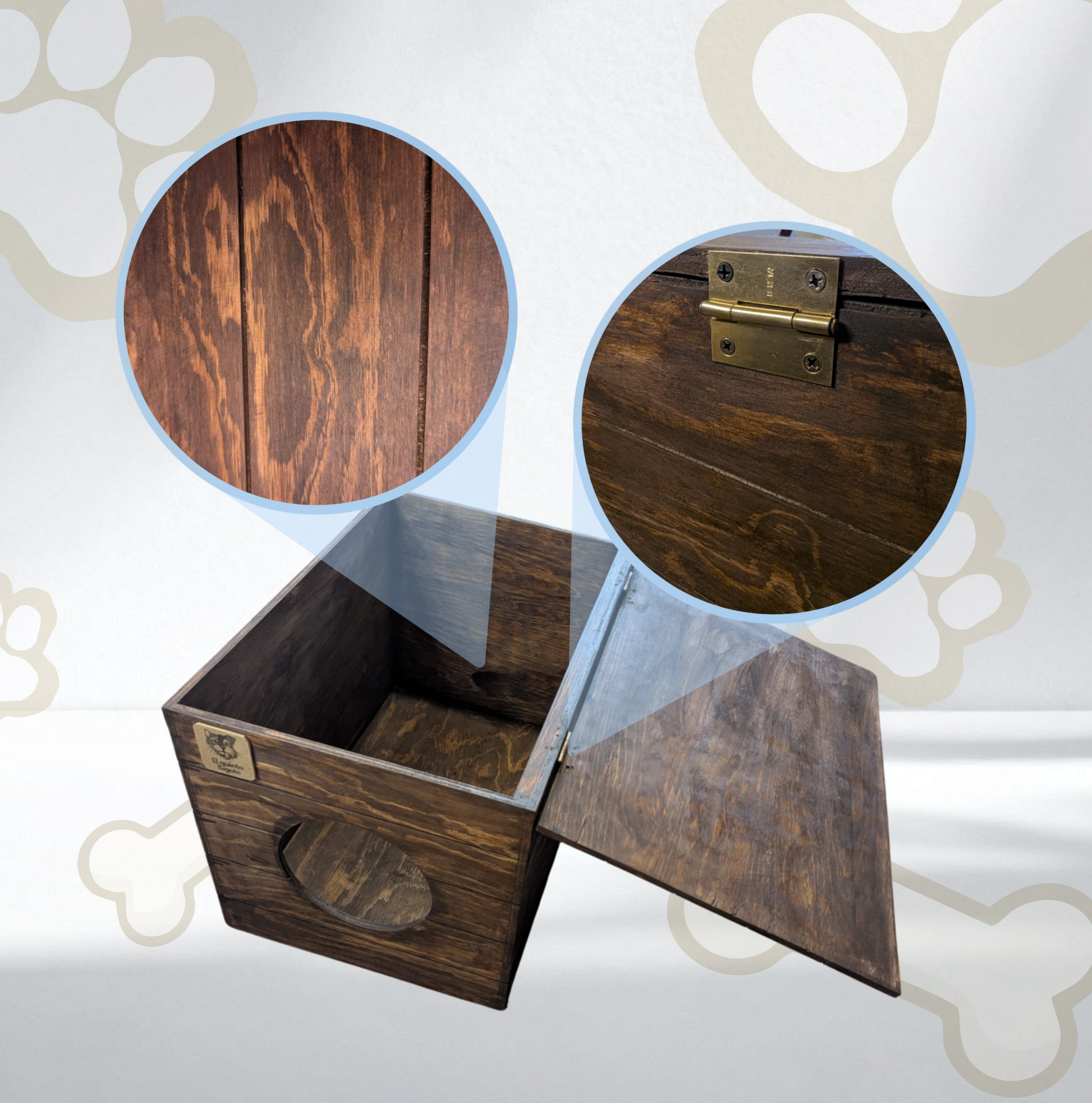 Baúl hecho de madera con uso para arenero o para cama de tu perro pequeño.