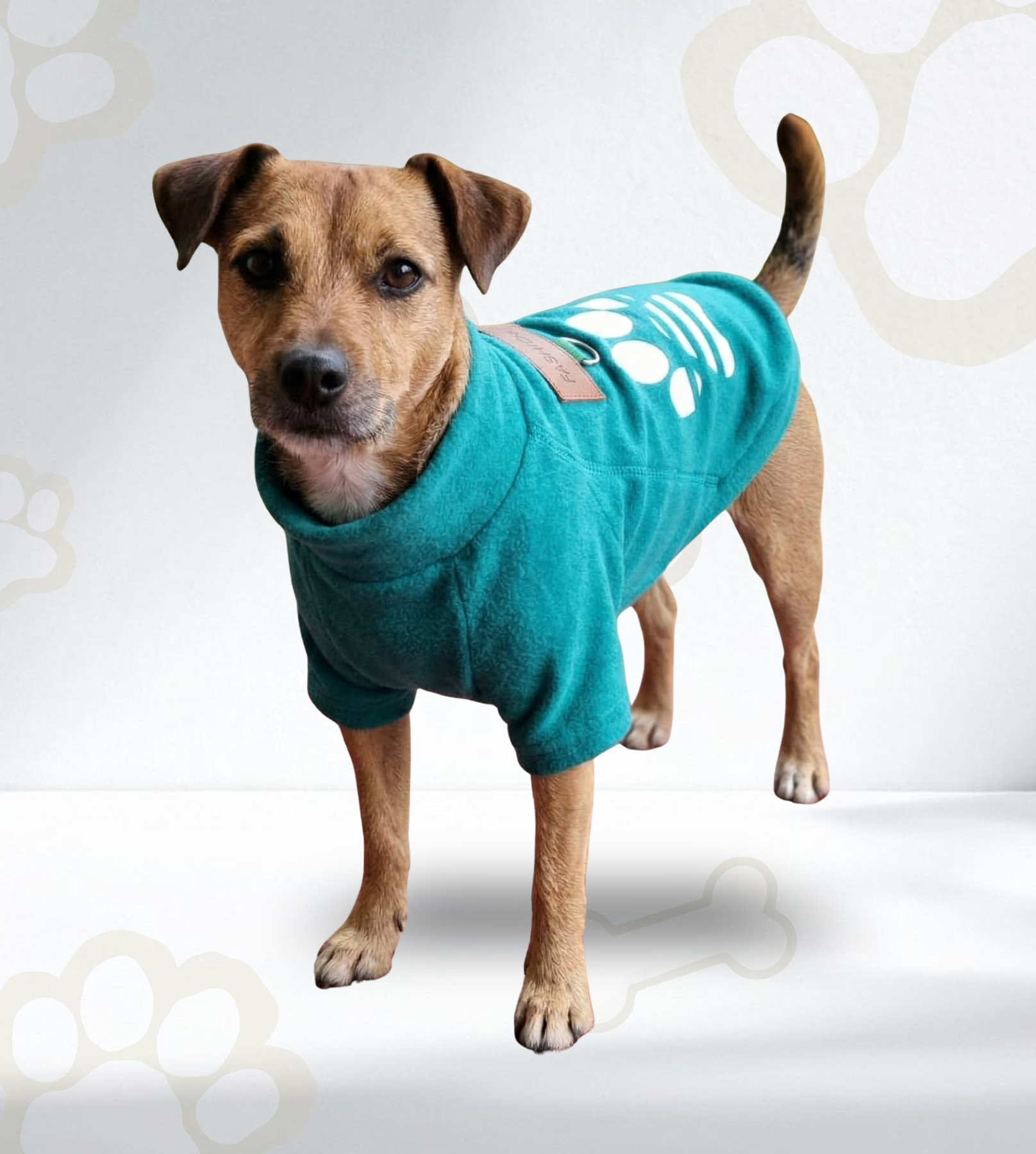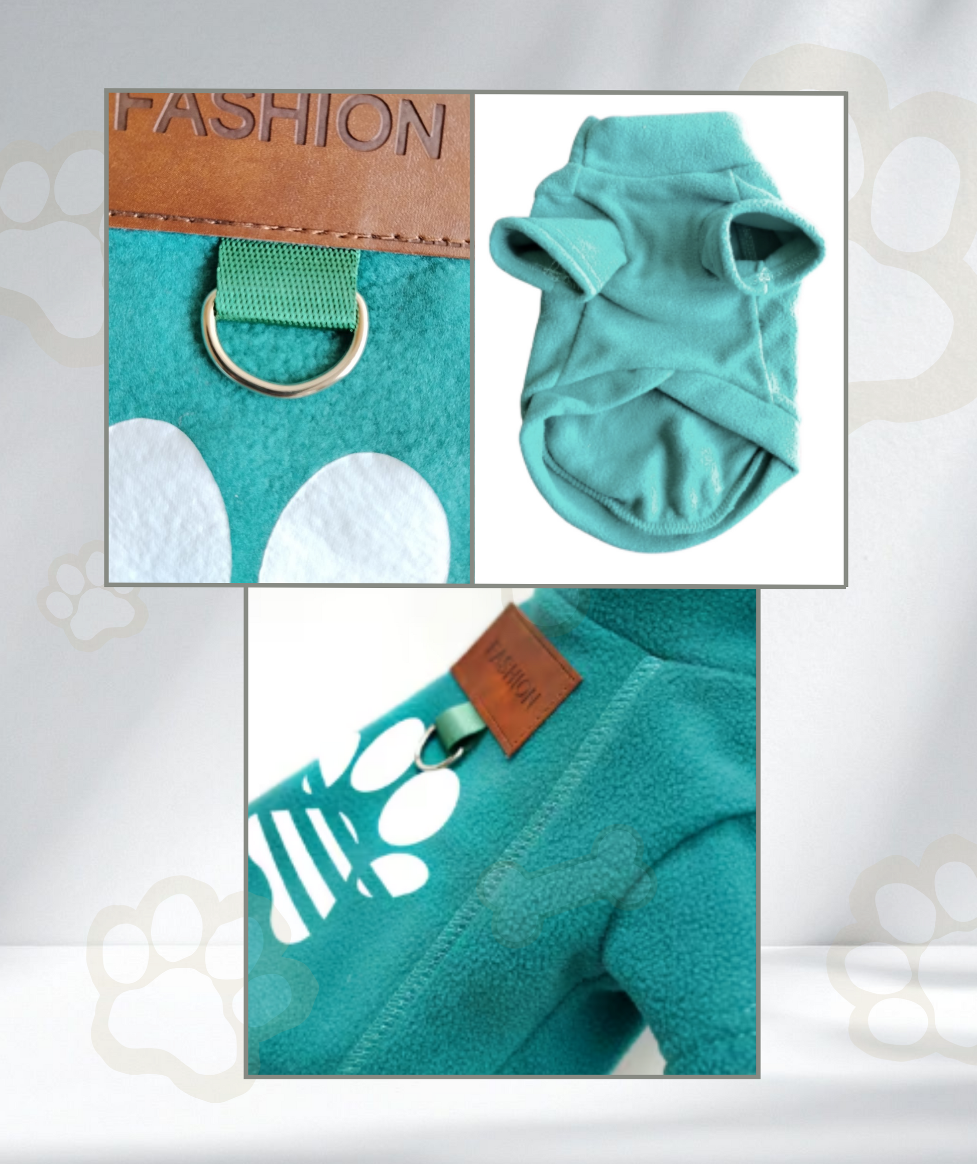 Suéter de tela suave con logo de huella para mantener calientito a tu compañero en tiempos de frío, cuenta con una argolla para que lo lleves con correa.